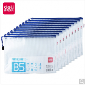 得力/deli 5655 文件袋10只B5网格拉链文件袋 蓝5655