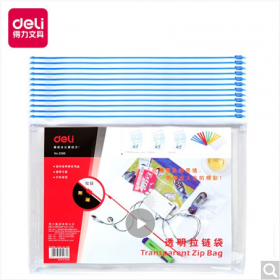 得力/deli 5526 文件袋12只A4透明拉链袋 文件袋 单色随机5526