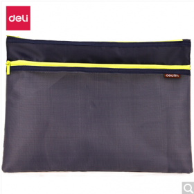 得力/deli 文件袋A4透气双层拉链文件袋 舒适布质收纳袋 单只颜色随机5841