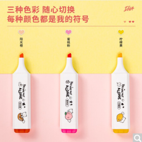 得力/deli S734 书写用笔类用具3色荧光笔套装 醒目标记笔 手帐可用水性记号笔 荧光色系方杆S734