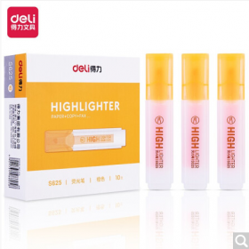 得力/deli s625 书写用笔类用具黄色荧光笔考试复习标记笔 手帐可用水性记号10支/盒s625