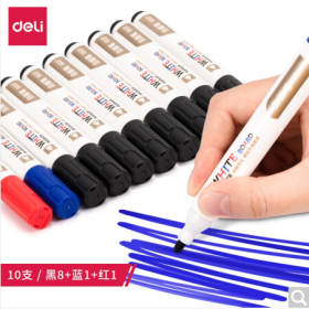 得力/deli 33529 书写用笔类用具白板笔套装 可擦易擦 办公教学会议笔 办公用品 8黑1蓝1红DL-33529