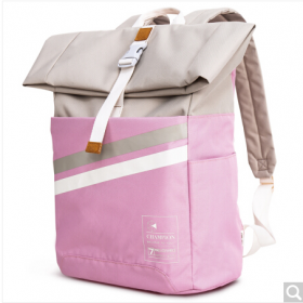 得力/deli 5560收纳包学院风多功能袋口卷曲双肩包 大容量中学生耐用书包 B2粉色