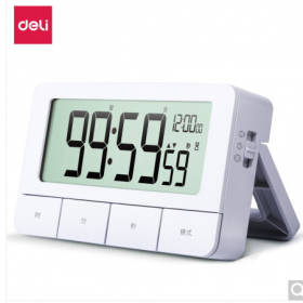 得力/deli 8841 座钟多功能电子闹钟 正倒计时循环计时器 静音震动 白色 8841