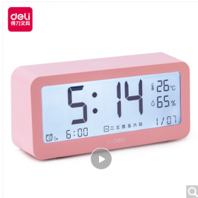 得力/deli 8826 座钟欧阳娜娜 多功能电子闹钟 背光电子钟 温湿度计功能 粉色8826