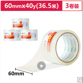得力/deli 33074 胶带封箱胶带打包胶带 60mm*40y*50um(36.5m/卷) 3卷装 33074