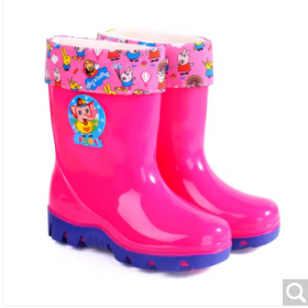 迪士尼/Disney D210雨鞋 2-10岁儿童/雨鞋宝宝水鞋男女童中筒雨靴小中大童防滑童胶鞋雨水靴 玫红色(加绒套) 31(内长17厘米)适合25码的脚