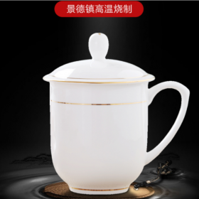 陶相惠 jinbian1 杯 骨瓷茶杯办公杯会议杯陶瓷盖杯开会杯子商务会议办公水杯带盖1只装