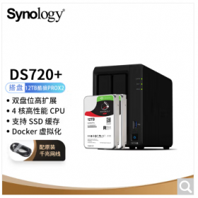 群晖/synology DS720+ 网络存储设备搭配2块希捷(Seagate) 12TB酷狼pro ST12000NE0008硬盘