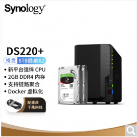群晖/synology DS220+网络存储设备 搭配2块希捷(Seagate) 8TB酷狼IronWolf ST8000VN004硬盘