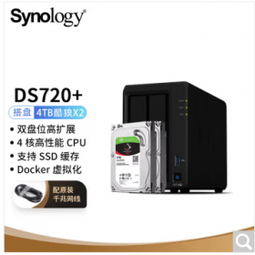 群晖/synology DS720+ 网络存储设备搭配2块希捷(Seagate) 4TB酷狼IronWolf ST4000VN008硬盘